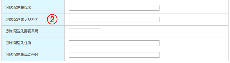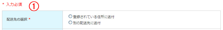 - 「別の配送先に送付」を選択すると、②の別の配送先入力欄に入力された宛先に送付されます。