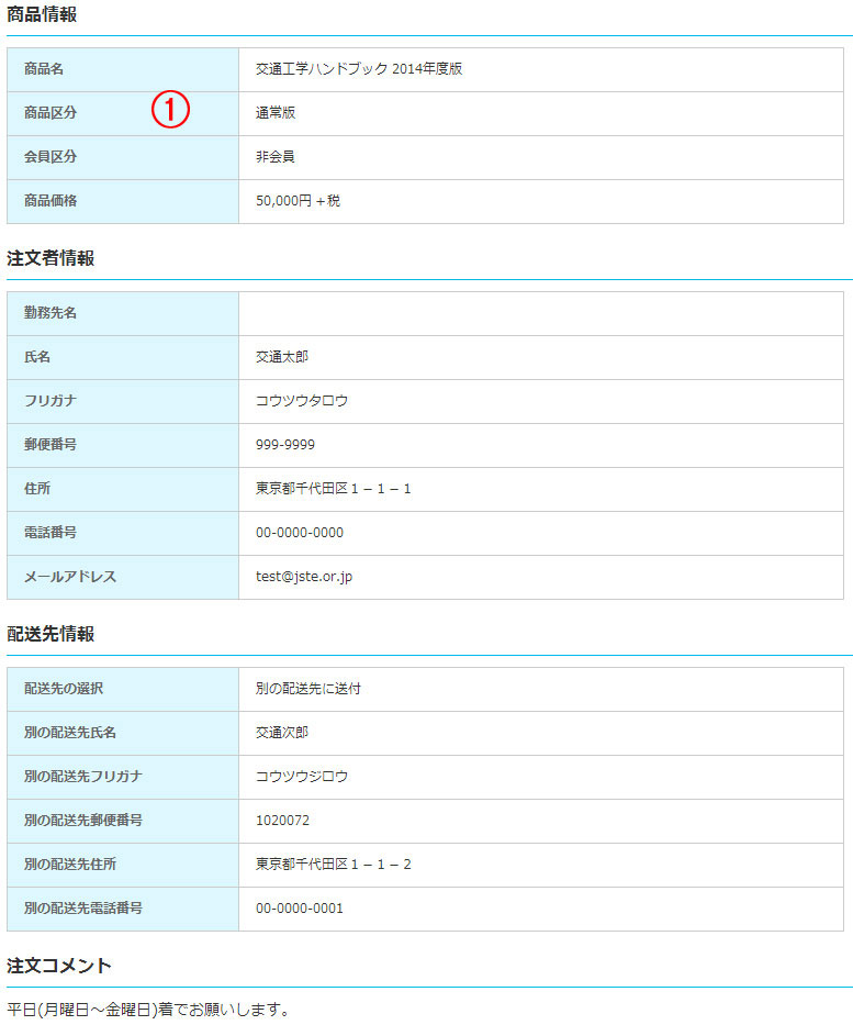 ① 商品情報・注文者情報・ライセンスキー配送先情報の確認